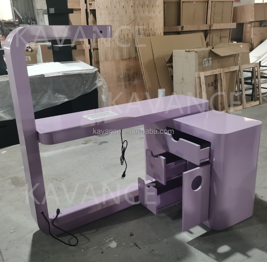 Mesa de escritorio de uñas de color púrpura Glam con cajón y colector de polvo para mesa de uso de salón de uñas
