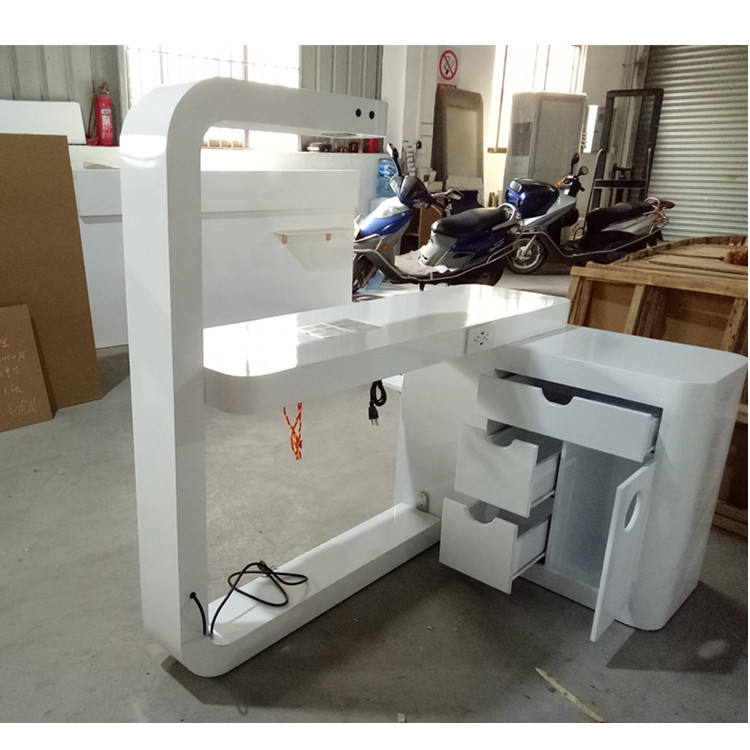 Salón de Uñas Muebles Mármol Escritorio de uñas Mesa de manicura doble con ruedas y cajón