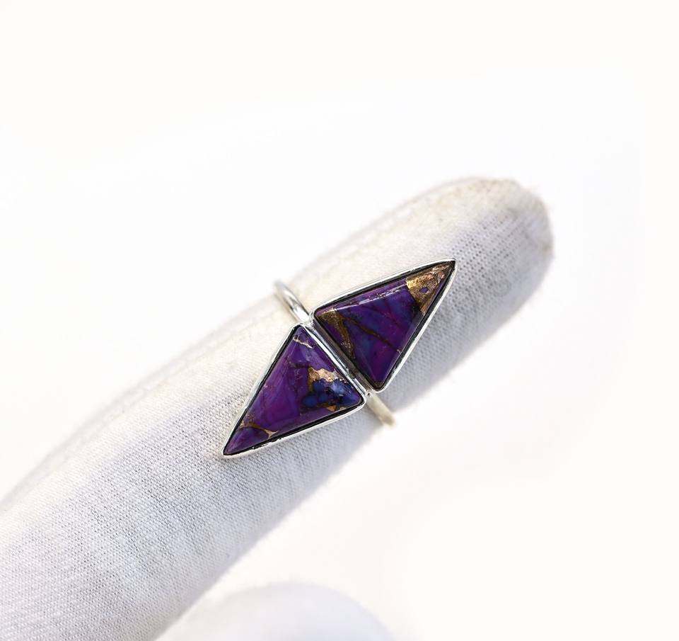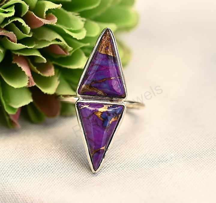 Nombre del producto:Anillo de plata de ley 925 con piedras preciosas y turquesa de cobre púrpura