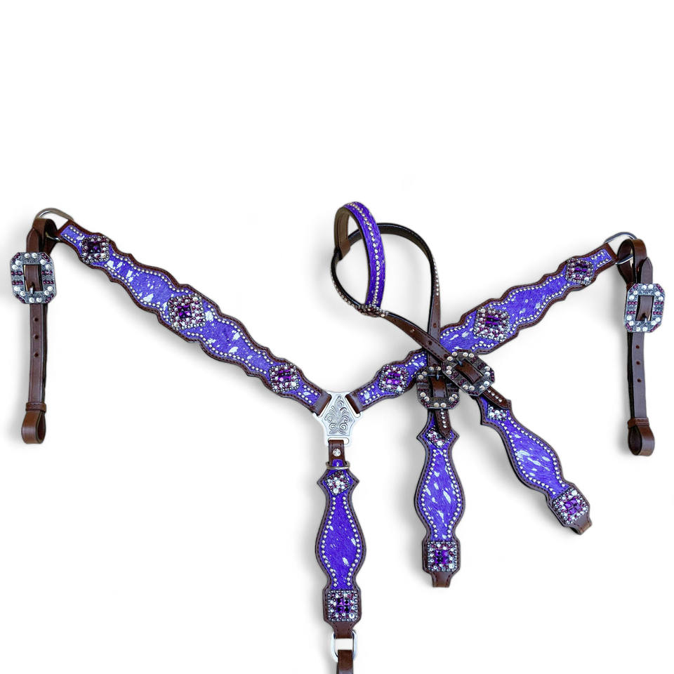 Caballo occidental headstall & Placa de pecho conjunto ácido lavado púrpura pelo enNombre del producto