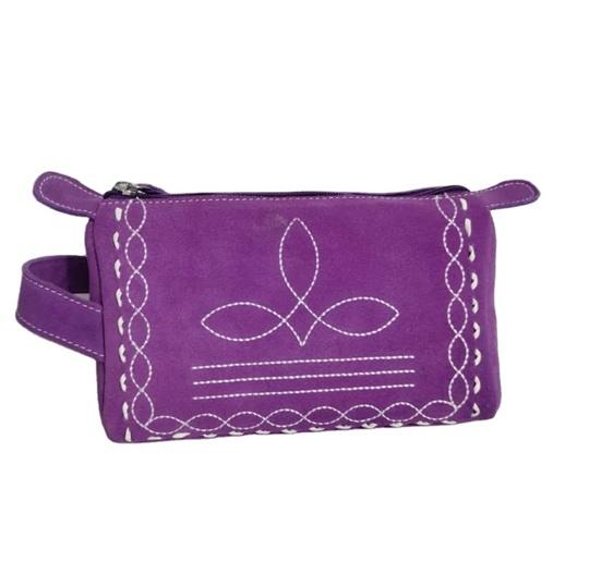 Boot Stitch Suede Leather Cosmetic Bag Toiletry bag