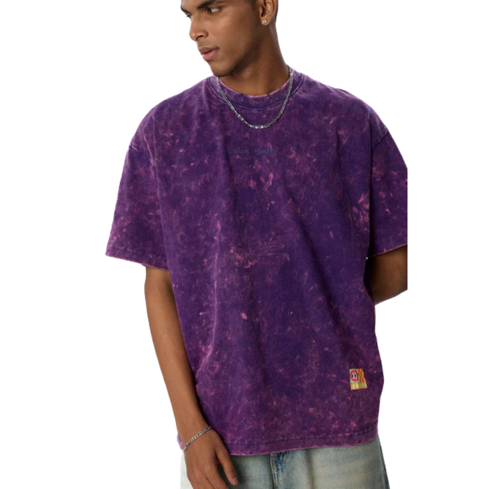 Camisetas de Hombre de Algodón 100% Lavado, Estilo Vintage, Holgadas, Color Morado, Ropa Urbana Informal, Suave y Transpirable para Uso Diario