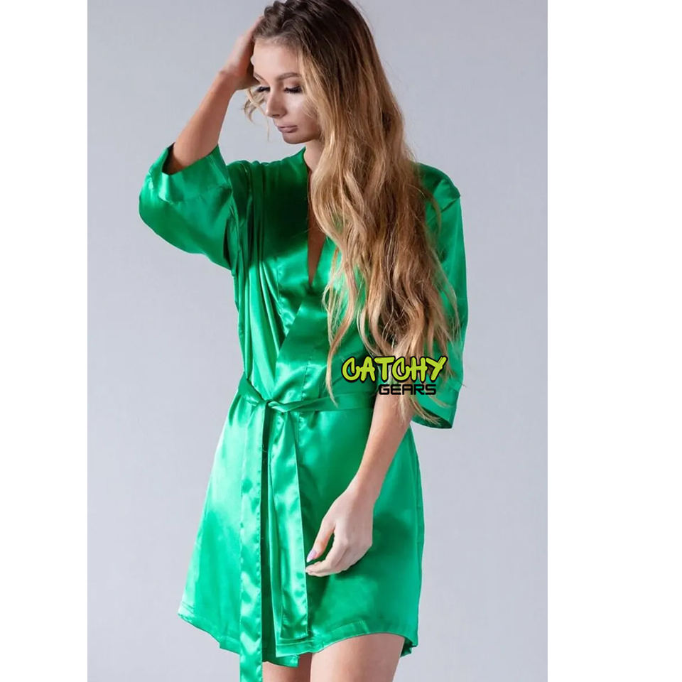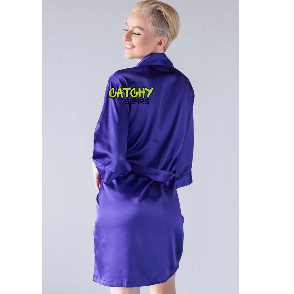 Bata de satén de seda morada con logo personalizado, estilo vintage, talla grande, hasta la rodilla, con estampado de puntos, kimono térmico para dormir
