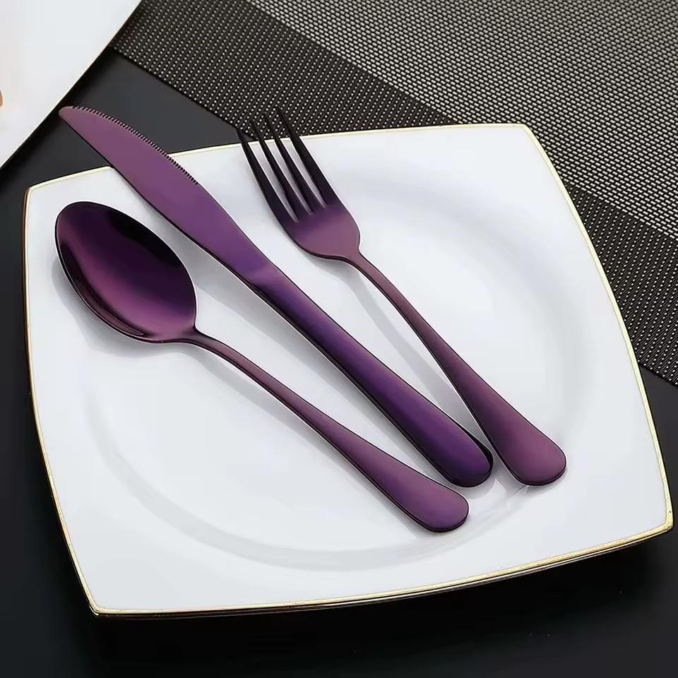 Juego de Cubiertos Planos con Acabado de Espejo Simple en Color Morado, Calidad Premium, Perfecto para Restaurantes, Hoteles y Experiencias Gastronómicas Finas