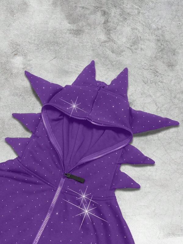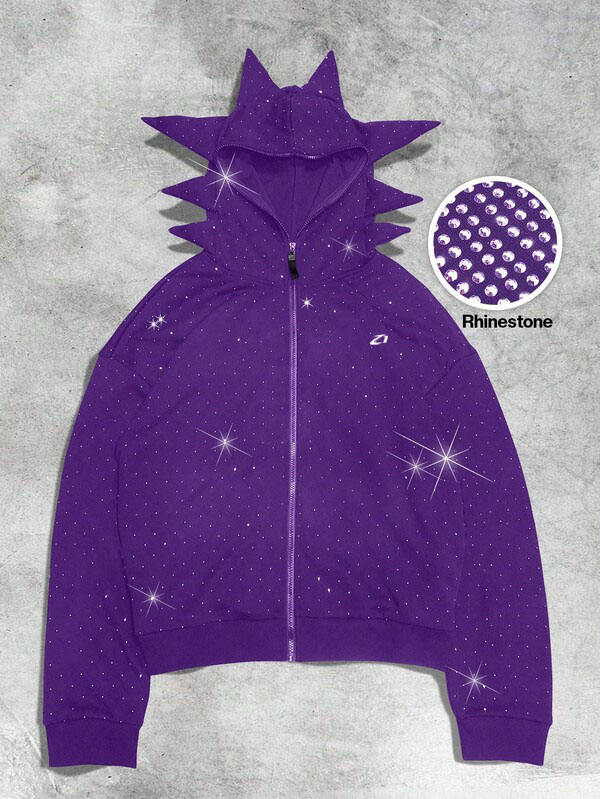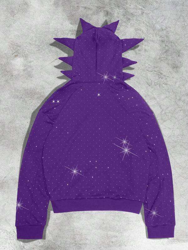 Sudadera con capucha morada con pedrería y cremallera para hombre, de algodón grueso, estilo urbano, transpirable, para invierno, de fábrica OEM