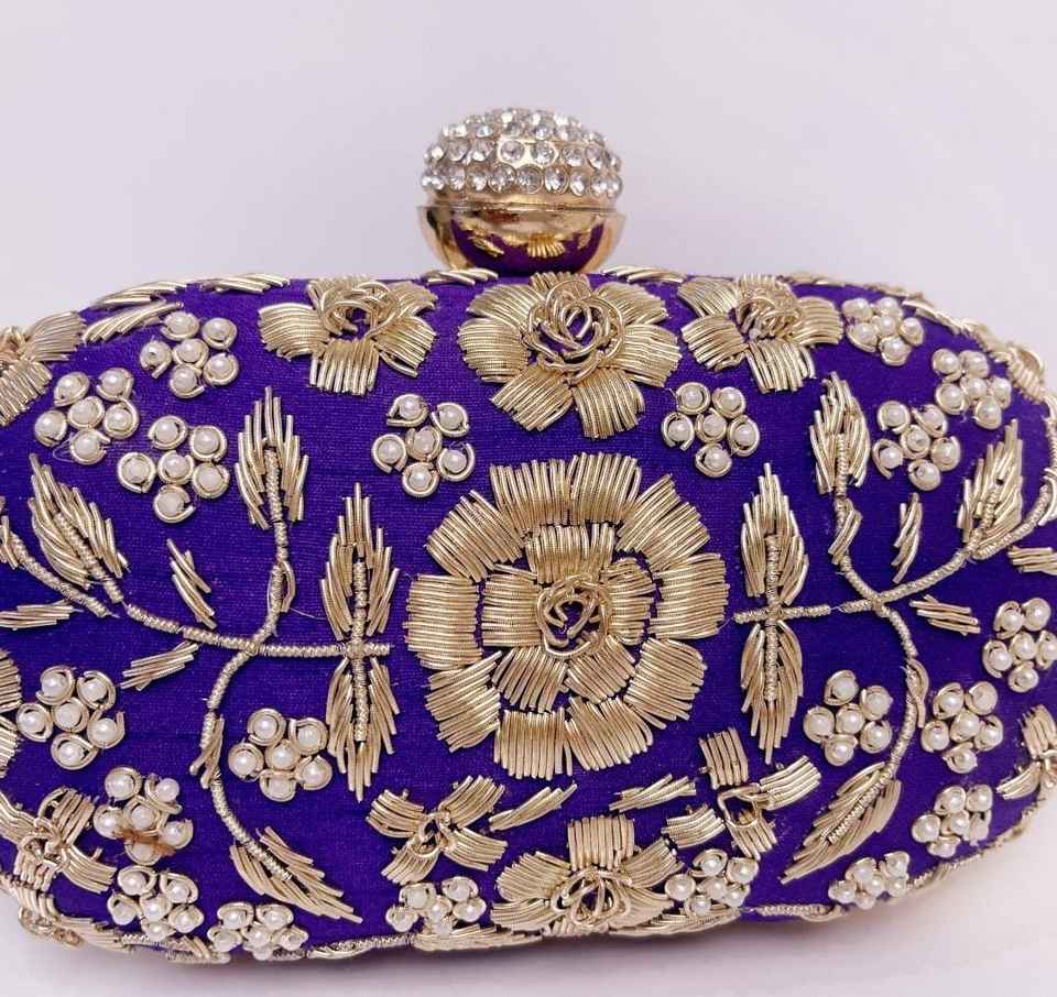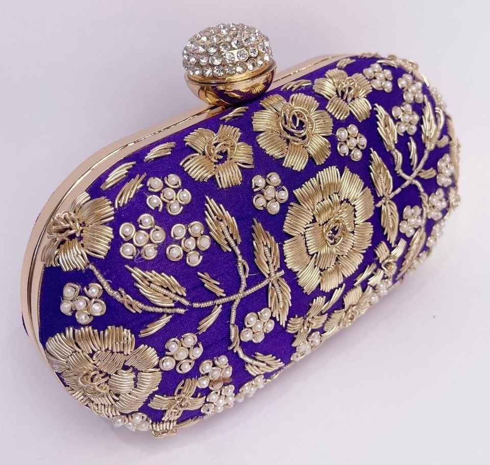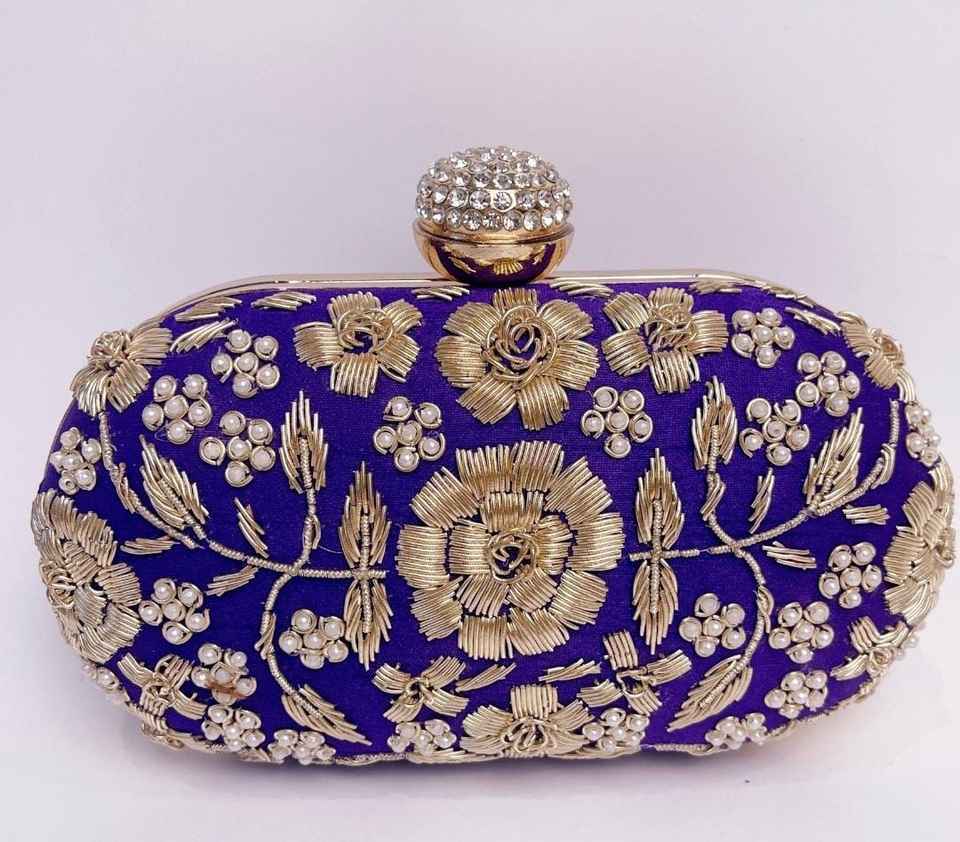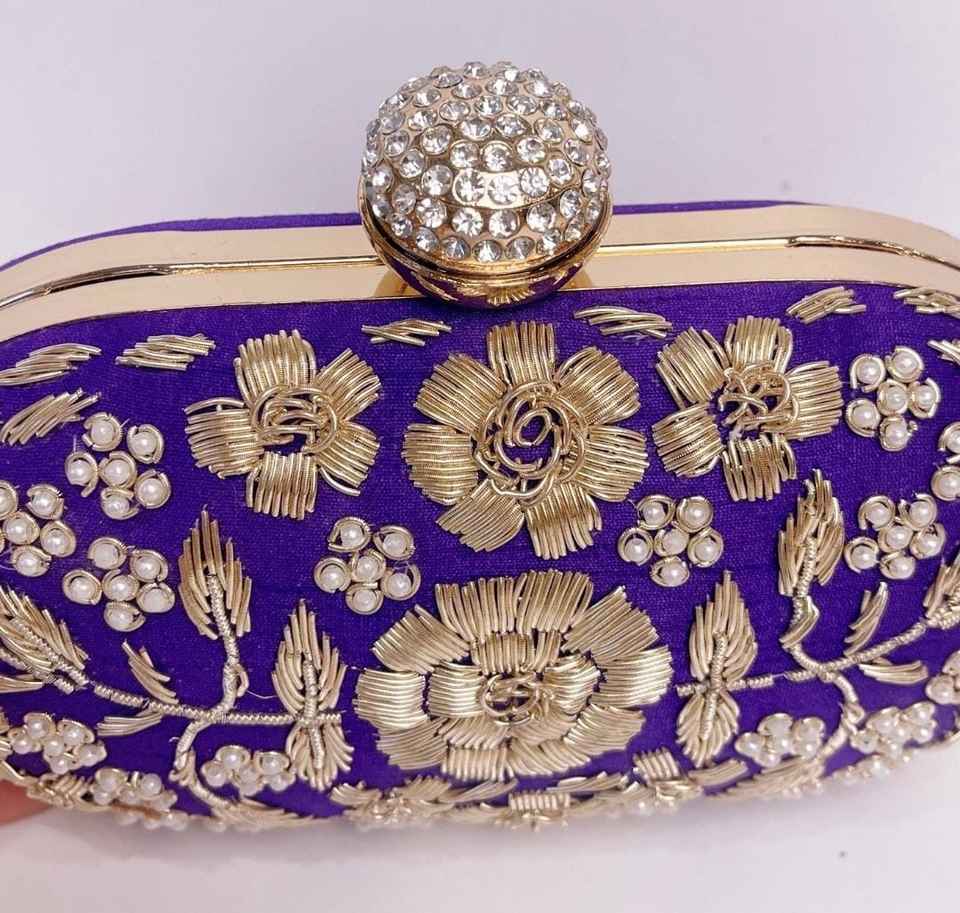 Zardozi-Bolso de mano púrpura, embrague bordado para boda
