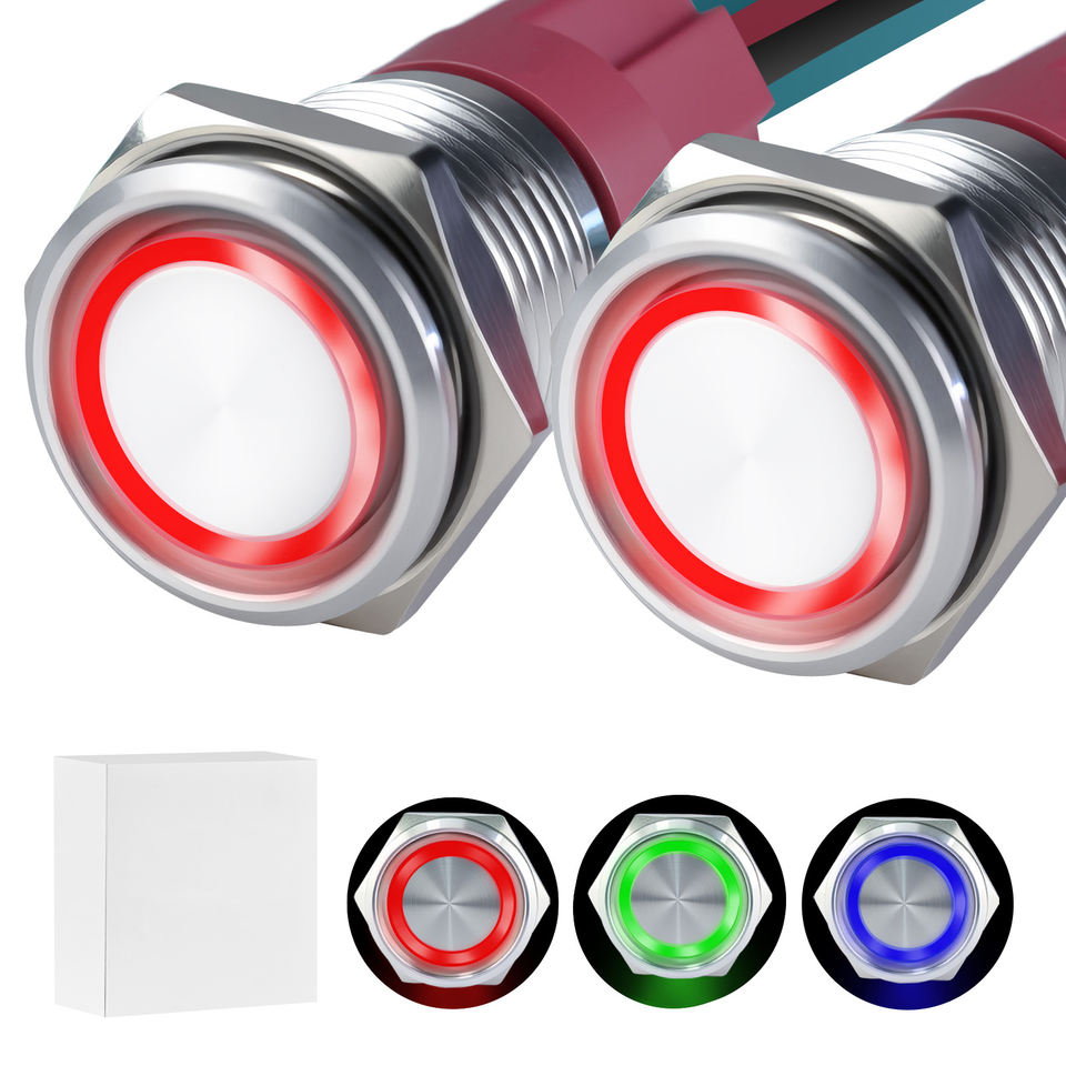 Interruptor de Botón Pulsador Momentáneo de Latón de 16mm, 19mm, 22mm, IP67/IP65, LED, 1NO1NC, Contacto NO, Negro, 3A, 12V/24V para Panel de Control de Caja de Botones
