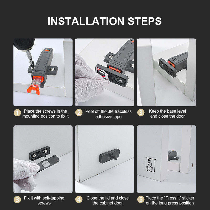 Sistema de apertura a presión para puertas, dispositivo magnético de acero inoxidable para abrir puertas de gabinetes con rebote, para gabinetes de cocina y apartamentos.