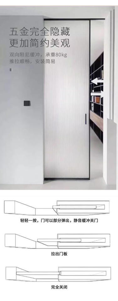 Riel Deslizante para Puerta Corredera Tipo Botón, Riel Guía Oculto de Acero Inoxidable con Amortiguación, Polea para Cocina y Exteriores