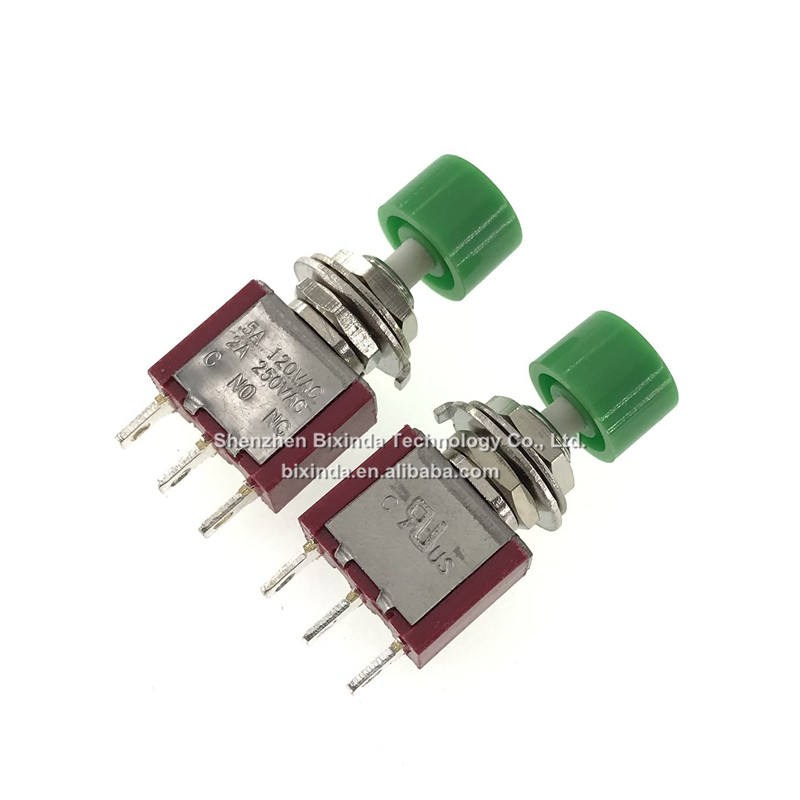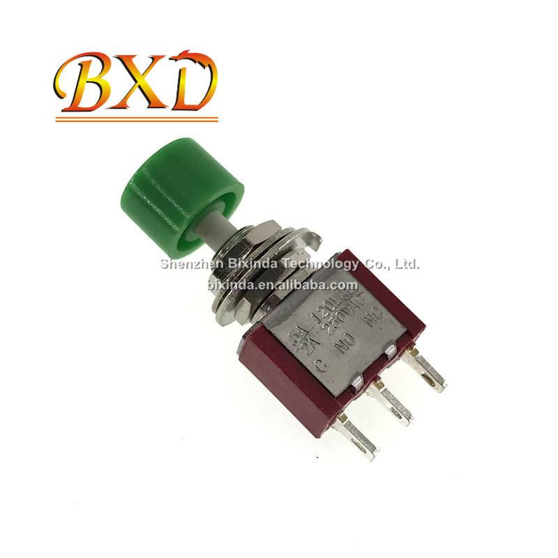 Interruptor de botón PS-102 PS-202, botón redondo de reinicio automático con capo de montar pequeño rojo, interruptor de palanca de 3/6 pines