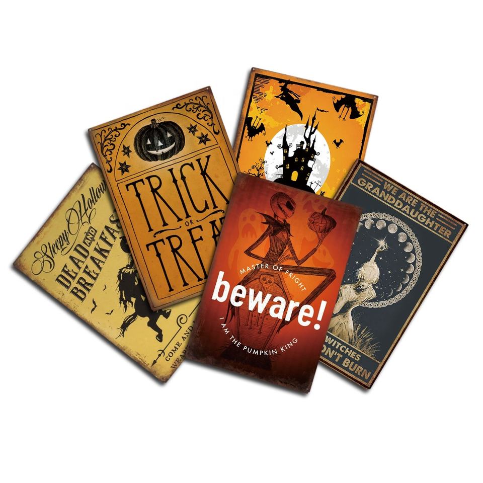 Halloween Metal Signo Placa de estaño Bruja Estaño Impreso Signo Home Decoración de la pared