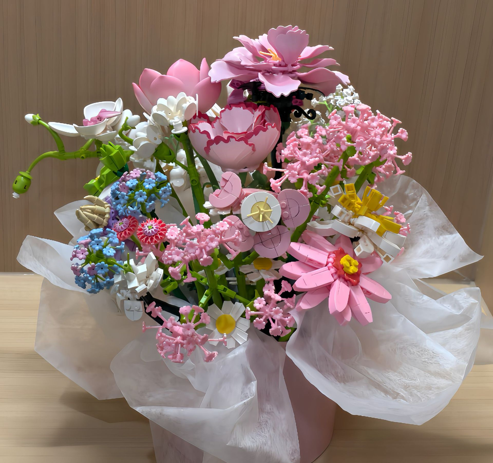 Bloques de Construcción de Rompecabezas, Simulación de Flores, Ensamblaje de Rosas, Jazmín, Margaritas, Ramo Eterno, Bloques de Construcción