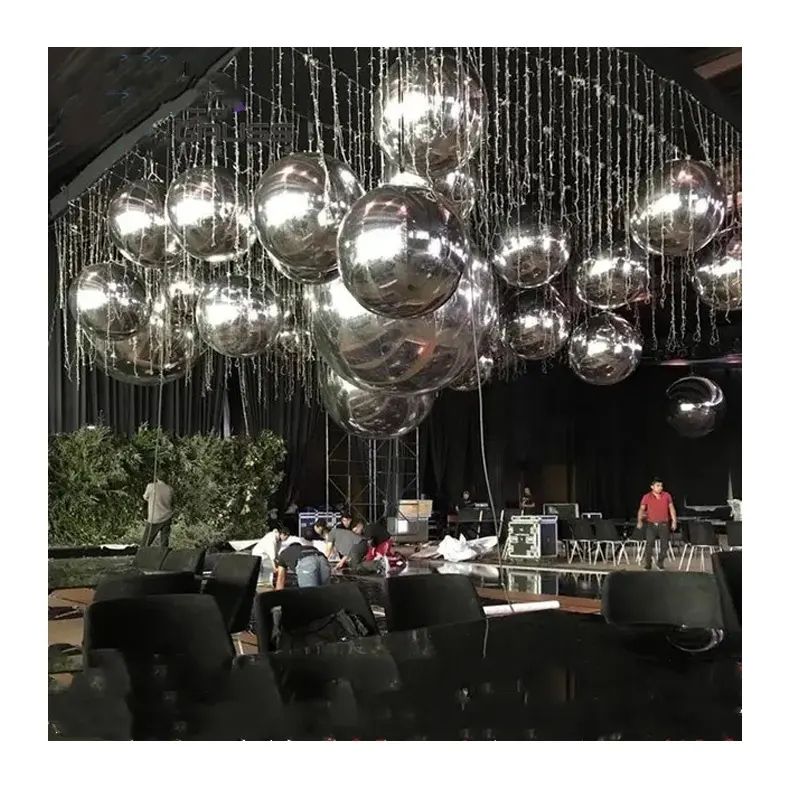 Bola de Navidad inflable de Pvc, Bola de discoteca camaleón, globo de espejo, esferas de espejo inflables brillantes grandes, Bola de espejo inflable de plata