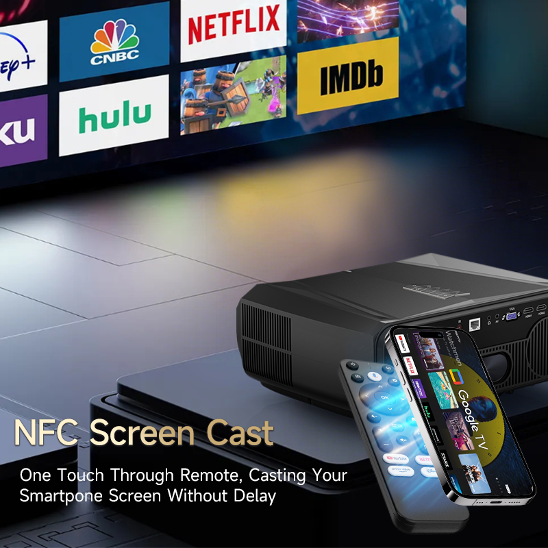 Proyector Inteligente Pxdodya Android 14.0 Compatible con Netflix, YouTube y Más de 4000 Aplicaciones, Altavoz de 30W | Proyector para Cine en Casa y Entretenimiento