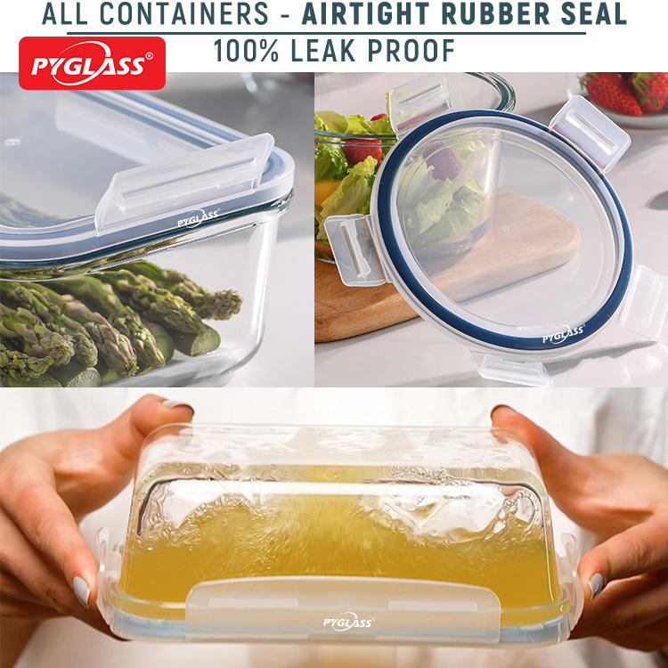 Contenedor de Vidrio Profundo de Borosilicato Alto Pyglass, Juego de 3 Piezas con Tapa de PP Hermética, Contenedor de Gran Capacidad para la Familia
