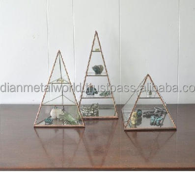 Caja de vidrio en forma de pirámide para anillo de boda, Terrario de vidrio geométrico, organizador de joyas, soporte