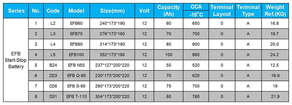 Product name:Q85L D23L 60Ah 65Ah 12v EFB Car BATTERY for START STOP CAR