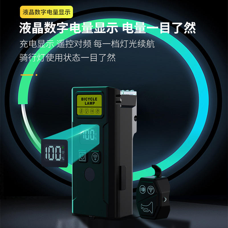 Luz de bicicleta Q09L con control remoto, pantalla digital, luz delantera LED recargable por USB para ciclismo nocturno