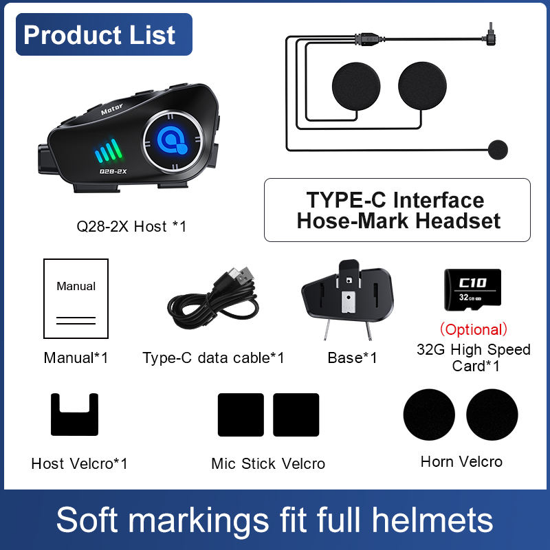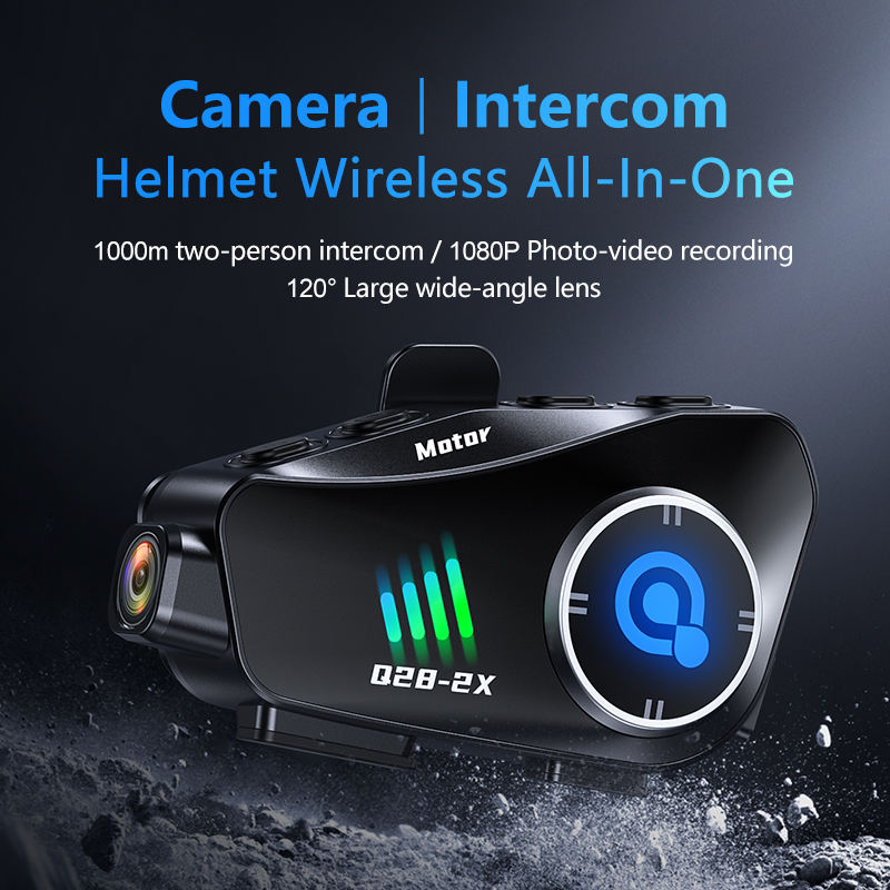 Nuevo Intercomunicador para Motocicleta Q28 2X 2025 para Conducción al Aire Libre, Auriculares para Casco con Cámara, Grabadora de Voz y Alcance de 500M con Tarjeta SD