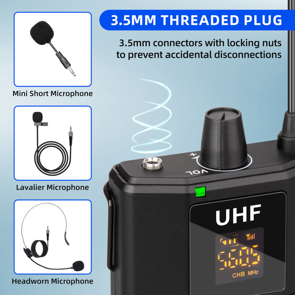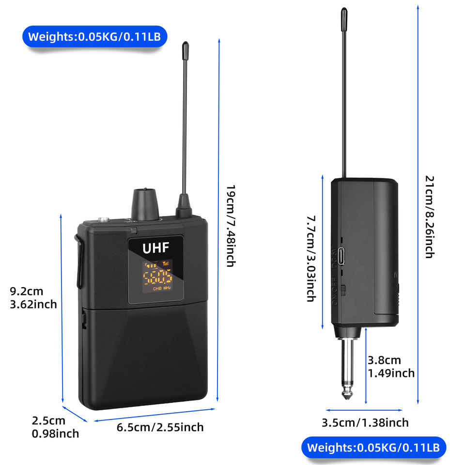 Micrófono inalámbrico portátil UHF Q3 con condensador metálico, patrón polar cardioide, cancelación de ruido, alcance de 165 pies, 30Hz-18kHz