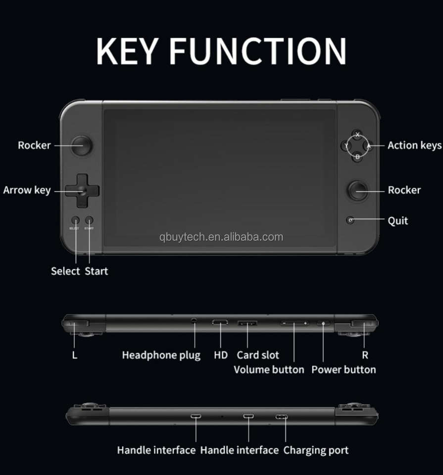 Consola de Juegos Portátil QBUY POWKIDDY X70 de 7 Pulgadas, Compatible con Controlador, Dos Jugadores, para Juegos Retro de PS1 y MD, Reproductor de Videojuegos con Salida de TV, Regalo