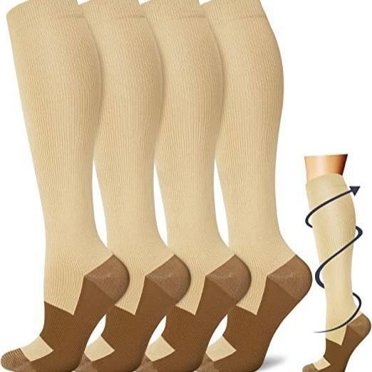 Calcetines de compresión QG para mujer, calcetines deportivos hasta la rodilla con soporte de iones de cobre, diseño de bloques de color de longitud alta