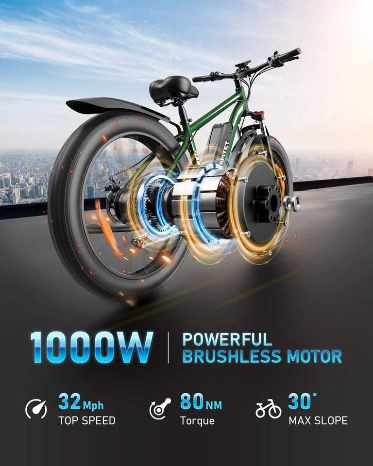 Bicicleta eléctrica todoterreno para adultos con neumáticos gruesos de 26 pulgadas y 1000W