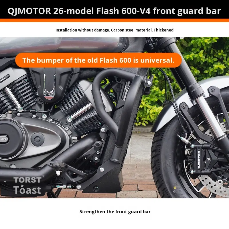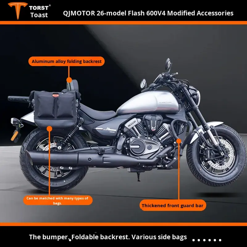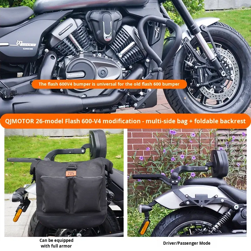 QJMOTOR Flash 600V4 (Modelo 2026) Barras Anticaídas, Protectores de Motor, Respaldo Plegable, Lona, Cuero, Alforjas de Acero al Carbono para Motocicleta
