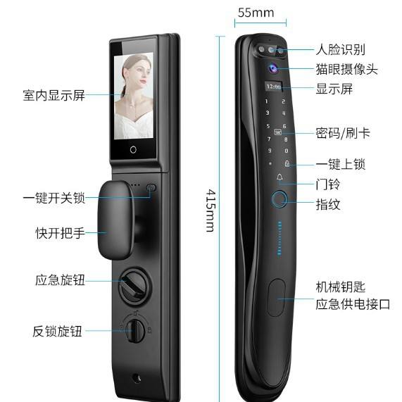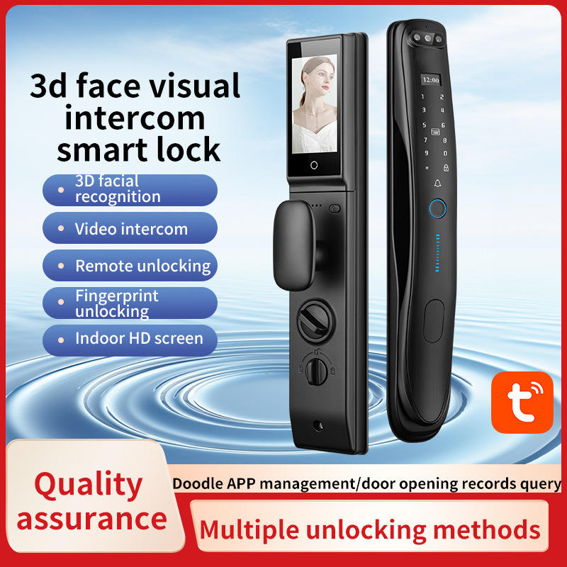 Cerradura Inteligente QLEUNG S931max Negra con Reconocimiento Facial 3D, Huella Dactilar, Contraseña y Tarjeta, Sistema de Seguridad para Puerta