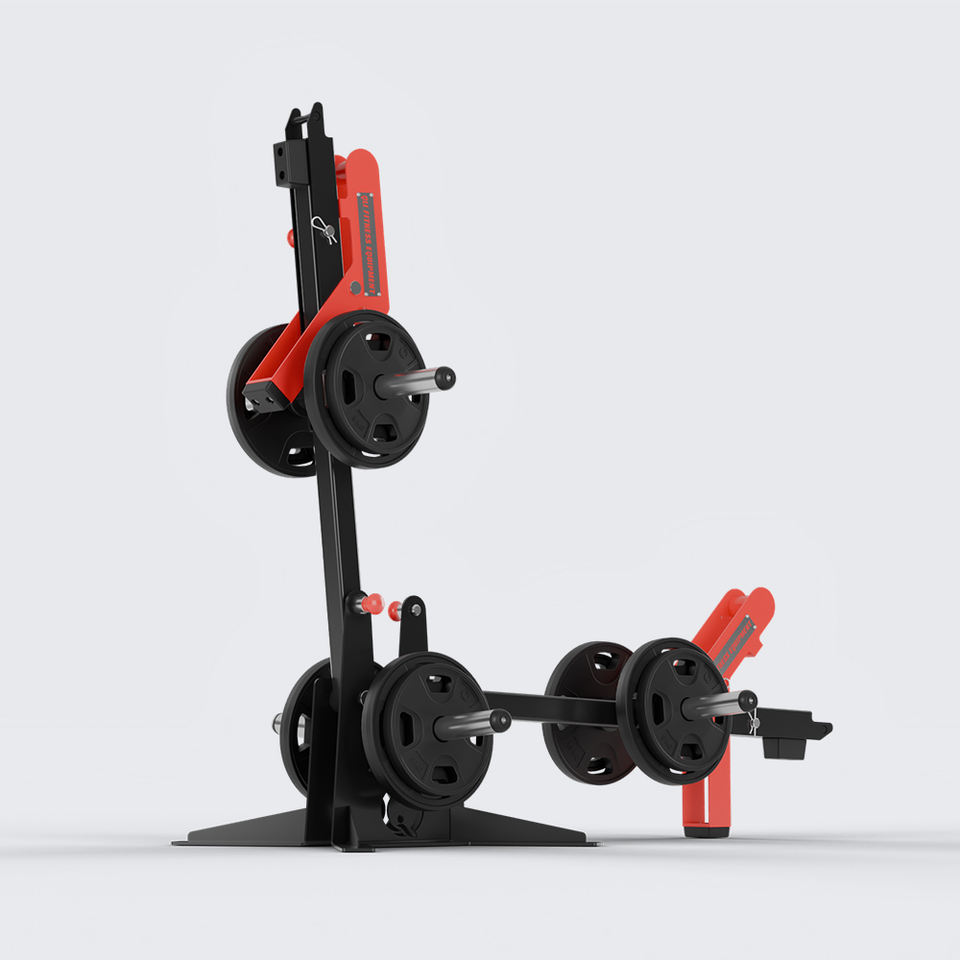 QLI QFDS107 Máquina de fitness metálica de uso comercial extra grande, independiente, para sentadillas en J y dominadas de doble cara con carga de placas