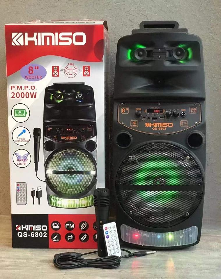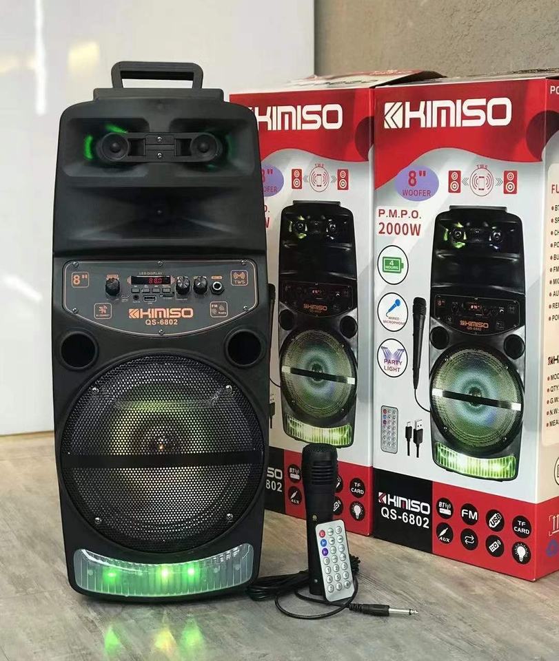 Altavoz Portátil con Ruedas QS6802 de 8 Pulgadas, Sistema de Altavoces para DJ con Luz LED, Altavoz Bluetooth KIMISO