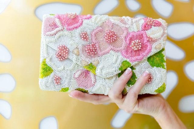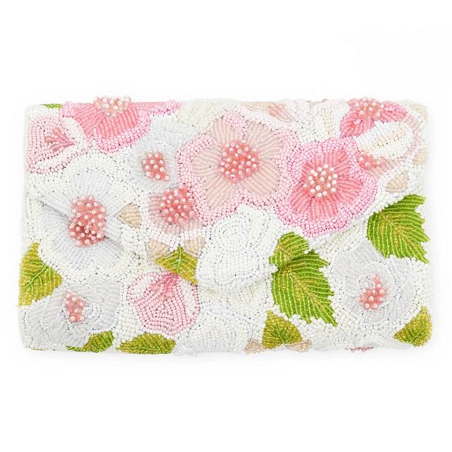 Bolso de Mano Tipo Sobre con Cierre Magnético, Forro de Satén/Terciopelo, Estampado Floral con Cuentas, de Moda y Calidad Garantizada para Mujer