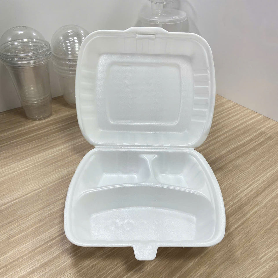 Fiambrera de espuma QUANG QUAN PS para restaurante, contenedor de comida desechable de plástico, tapa con bisagras para llevar