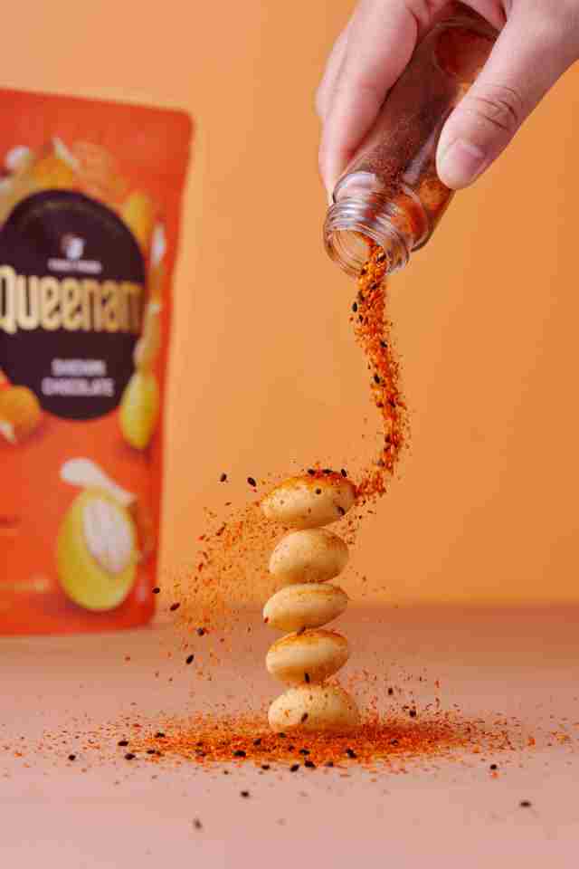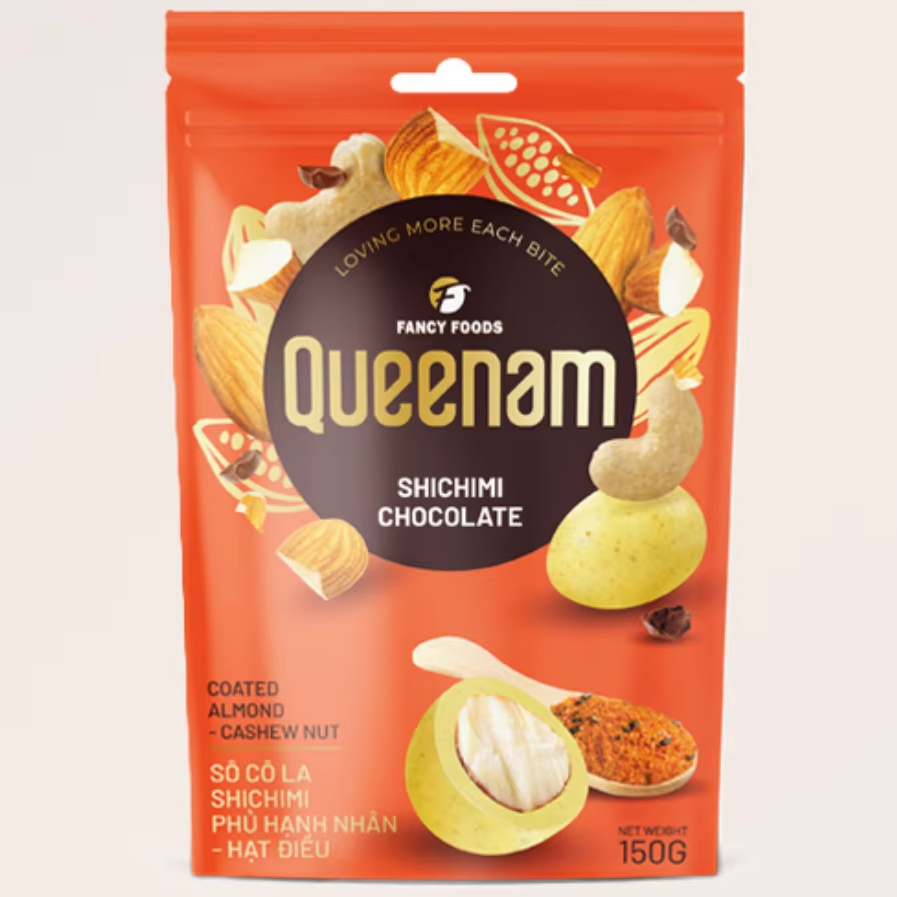 Contenido:Shichimi de chocolate recubierto de almendra de anacardo