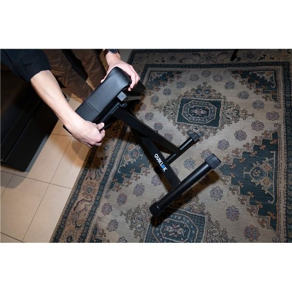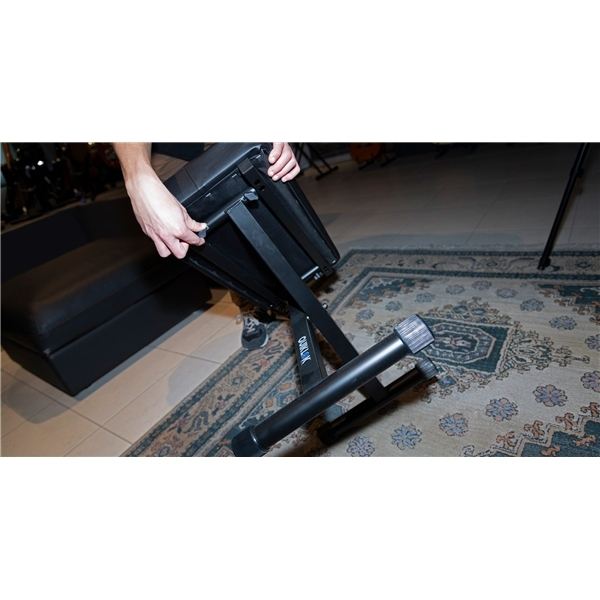 QUIK LOK - BX/718, Banco de Teclado Portátil, Asiento Acolchado Ancho, Riel de Acero Doble, 6 Alturas, Carga Máxima 135Kg, Color Negro