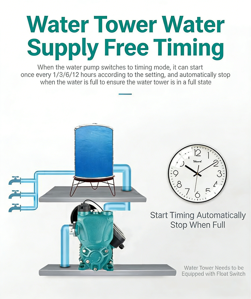 Bomba de Agua Automática con Temporizador QY-750-BPC, 0.75kW, 4m³/H, 40m de Altura de Elevación | Operación Silenciosa y con Turbocompresor | Suministro de Agua para Toda la Casa