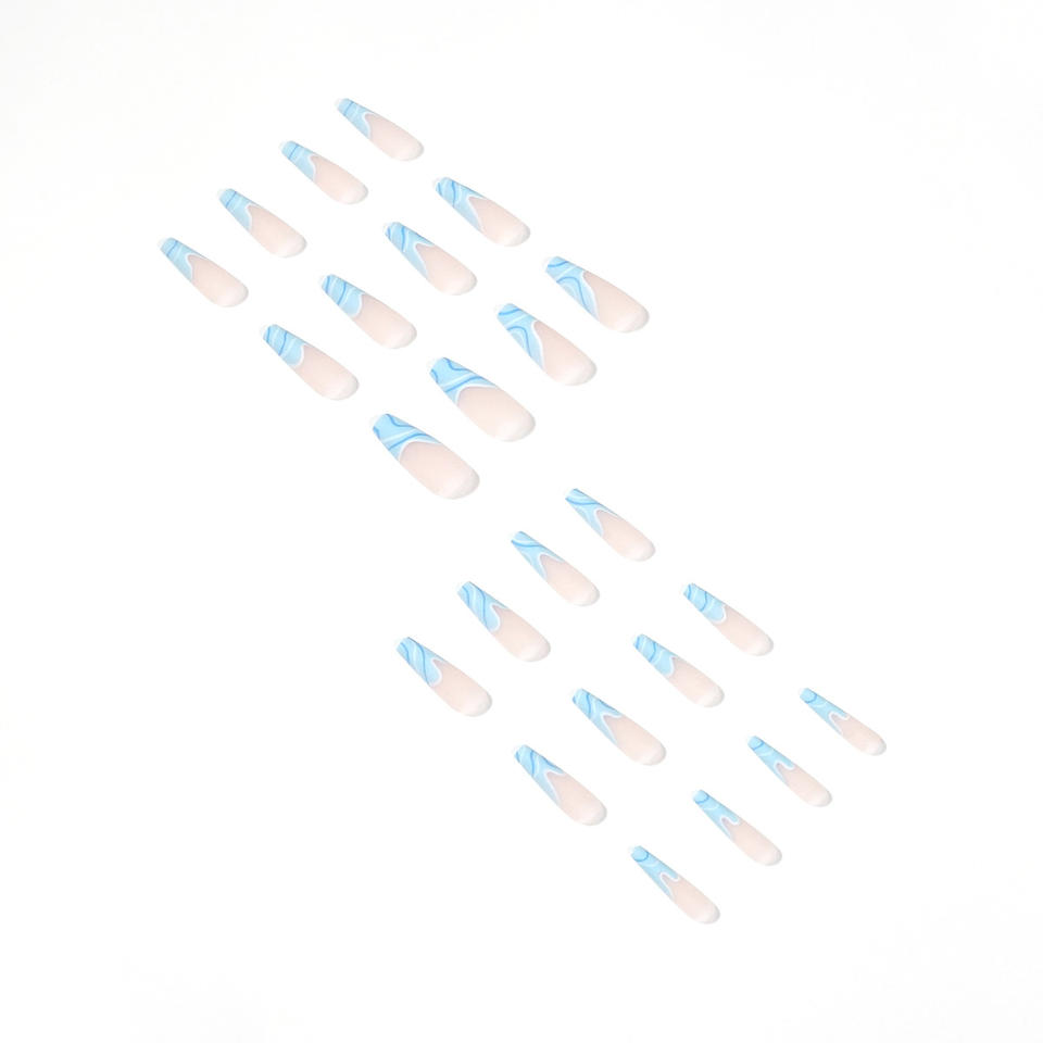 QY-Conjunto de uñas postizas artificiales para mujeres y niñas, juego de manicura con diseño de bailarina de línea abstracta, color azul mate