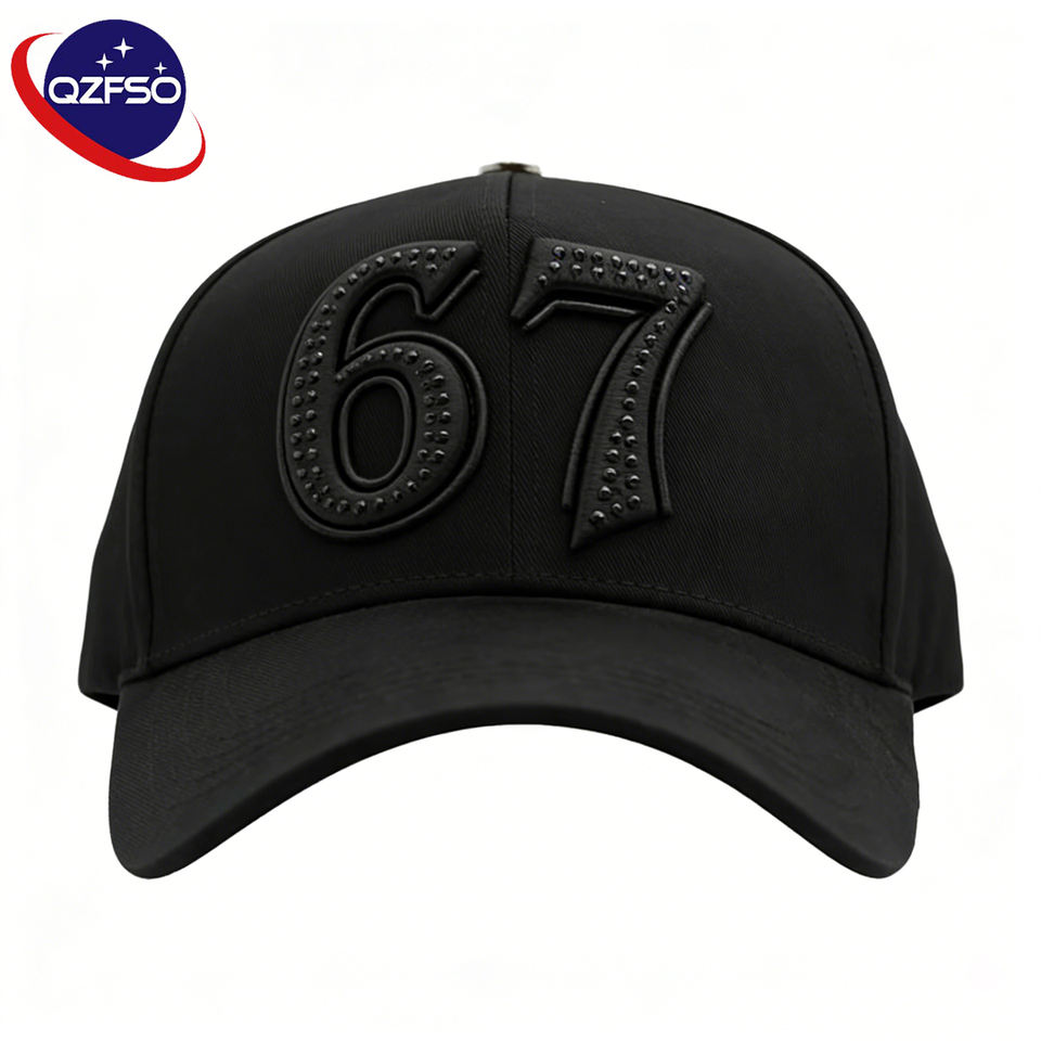 Gorra de Béisbol QZFSO Personalizada con Logotipos Bordados en 3D, Visera de Algodón y Gamuza, 5 Paneles, Alta Calidad, Color Negro Completo, Cierre a Presión