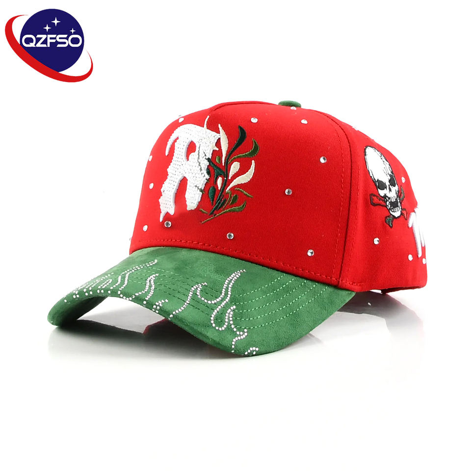 QZFSO Gorras de Béisbol Personalizadas con Bordado 3D, Gorras de Algodón Curvadas Bordadas de 5 Paneles, Estilo A-Frame, Gorras Sin Estructura con Pedrería