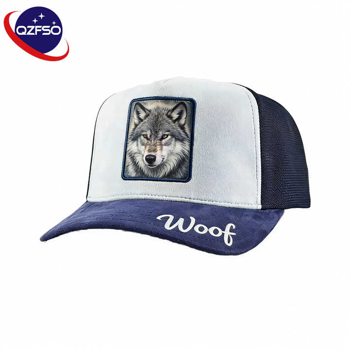 Gorra de béisbol de algodón de 5 paneles con malla y parche bordado personalizado QZFSO, diseño de animales a rayas, estilo camionero