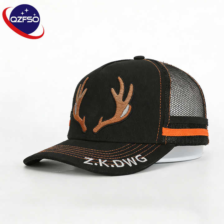 QZFSO Gorra de Béisbol de Malla de Algodón de 5 Paneles Personalizada de Alta Calidad para Hombre, Gorra Trucker con Visera Curva y Logotipo Bordado
