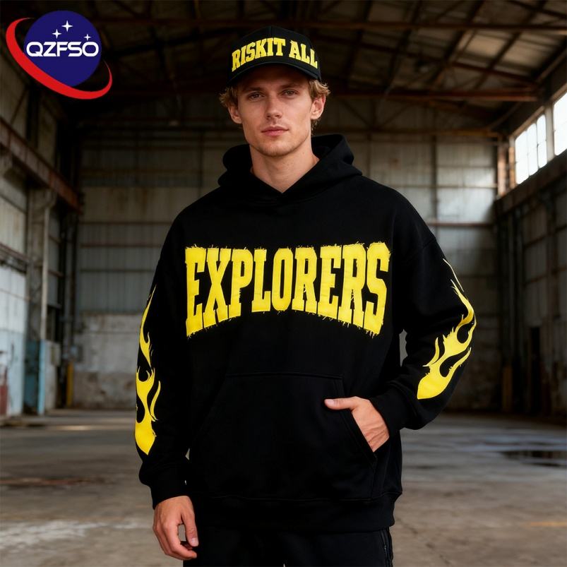 QZFSO, sudadera de alta calidad, personalizada para hombre, recortada, parche cuadrado, bordado, jersey de talla grande, Sudadera con capucha de peso pesado