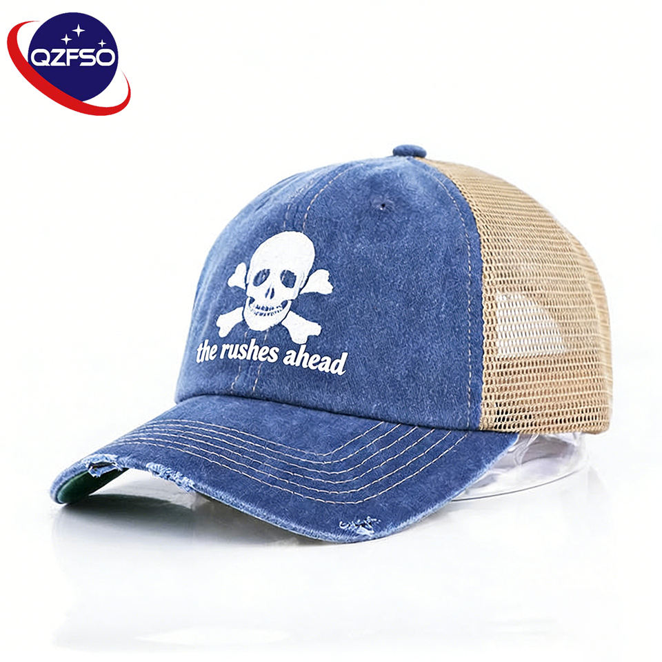 QZFSO Gorra de Béisbol de Algodón Estilo Americano Retro Vintage Lavada Personalizada al por Mayor, Gorra Trucker de 6 Paneles con Bordado Estampado Desgastado