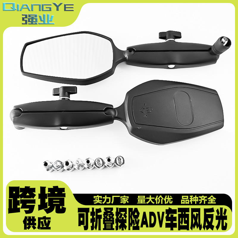 Espejo retrovisor plegable para motocicleta Qiangye, color negro, ajuste universal para vehículos todoterreno de aventura, protección de seguridad