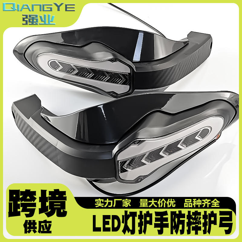 Protector de Manos para Motocicleta Qiangye, Negro, con Luces LED de Señalización, Protección de Seguridad, Accesorios para Manillar, Modificación Todoterreno