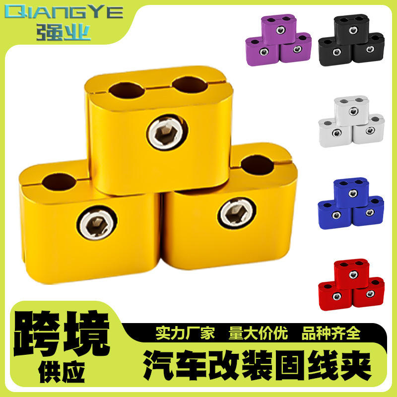 Abrazadera Divisora de Cable para Modificación de Motocicleta Qiangye, Dorada, Doble Orificio, para Fijación de Líneas de Aceite