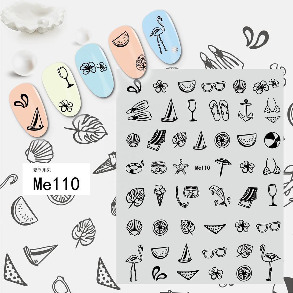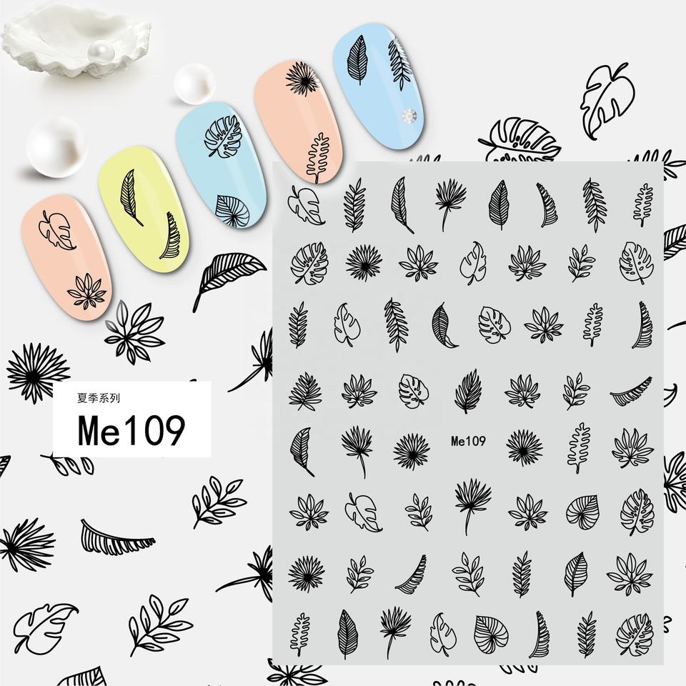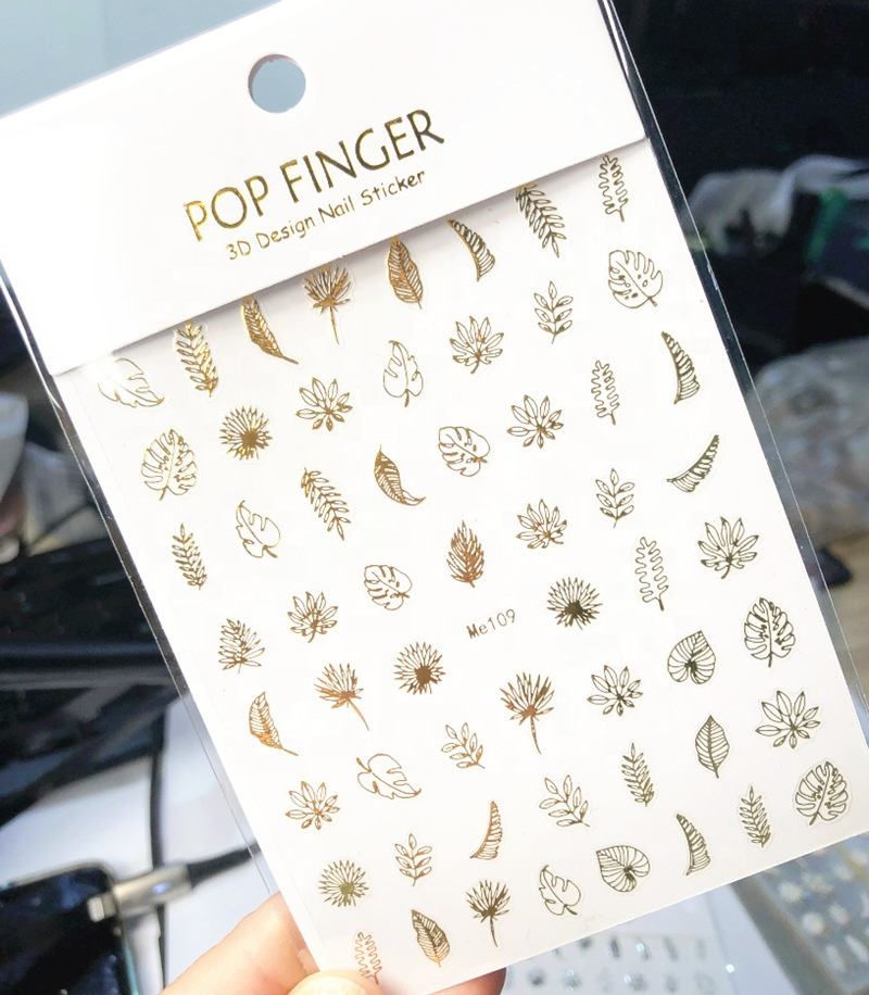Qianya 2022 verano 3D primavera diseño Nail Art Sticker calcomanías hoja oro plata láser colores brillantes hechos de plástico para vacaciones