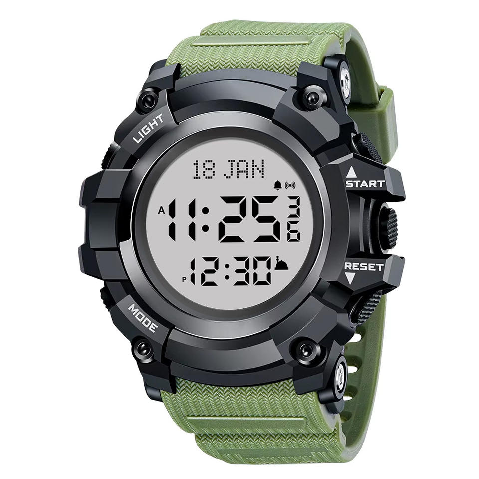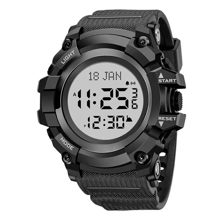 Sistema Qibla Ahzan, brújula, reloj electrónico deportivo para hombres de Oriente Medio, recordatorio multifunción, reloj indicador impermeable