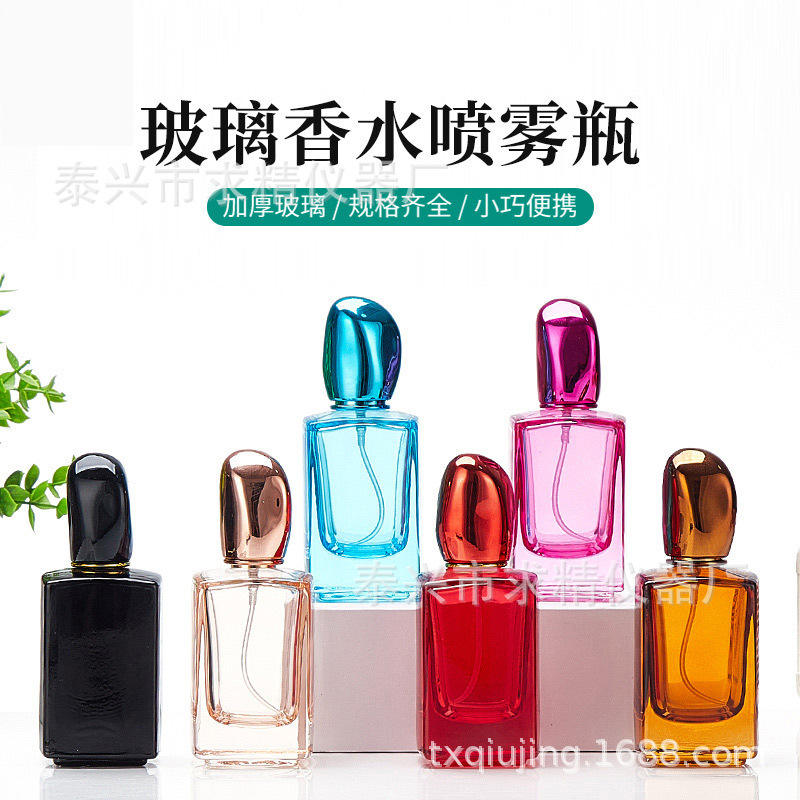 Qiujing Instrument Factory Colored Glass Perfume Bottles 30ml 50ml Square Spray Bottle Mini Travel Size Fragrance Container