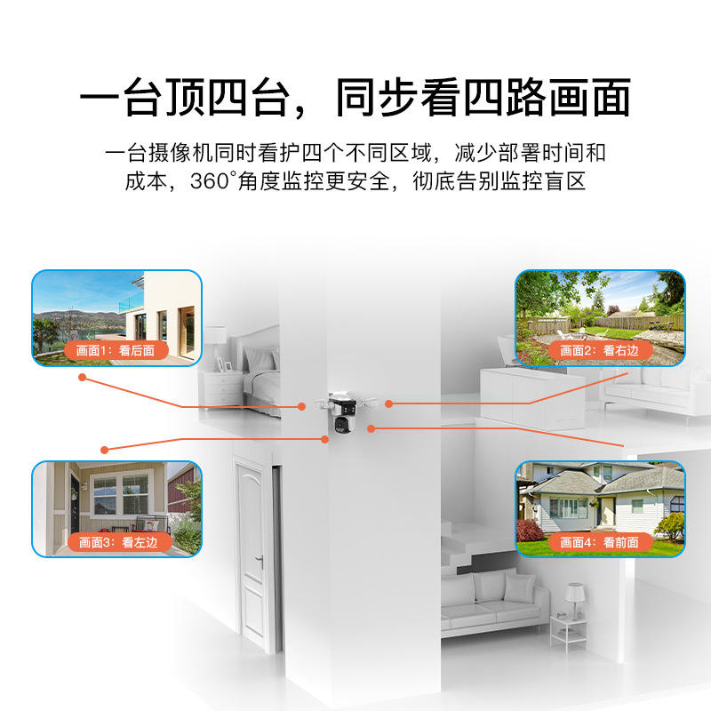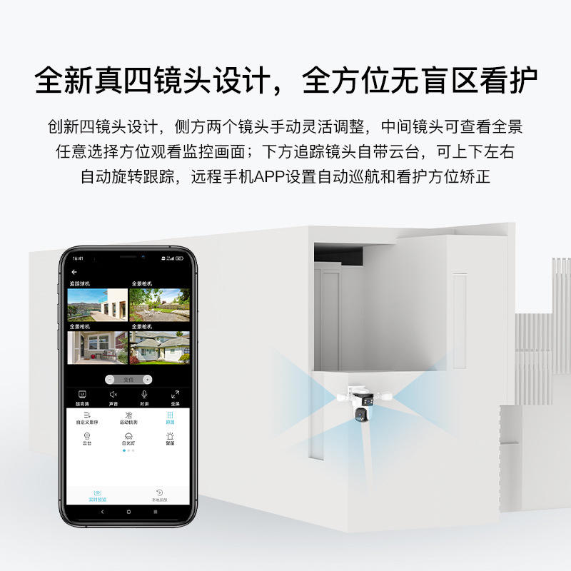 Cámara de Seguridad PTZ con Cuádruple Lente, 1080P, Inalámbrica, WiFi, Vigilancia Exterior con Visión Nocturna Infrarroja, Alcance de 20M
